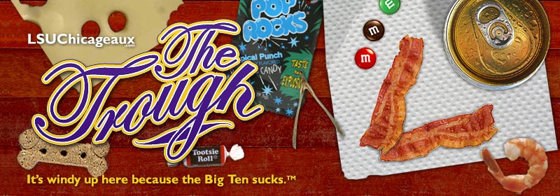Welcome to The Trough, a place that really gets to the meat of LSU's opponents. Ok, not so much the meat, but the sinewy gristle and thick connective tissue. We then feed these funbits through a grinder to get a coarse meaty bounty, and that's what is on display here. It should be a given that while The Trough is loosely related to LSUChicageaux.com, it's more like a Baton Rouge uncle than a Tuscaloosa cousin. In other words, what's in The Trough is obviously not endorsed by any official LSU entity. They've got better sense than that.