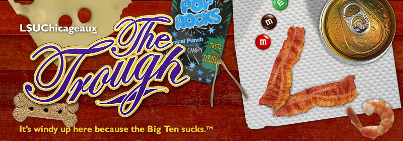 Welcome to The Trough, a place that really gets to the meat of LSU's opponents. Ok, not so much the meat, but the sinewy gristle and thick connective tissue. We then feed these funbits through a grinder to get a coarse meaty bounty, and that's what is on display here. It should be a given that while The Trough is loosely related to LSUChicageaux.com, it's more like a Baton Rouge uncle than a Tuscaloosa cousin. In other words, what's in The Trough is obviously not endorsed by any official LSU entity. They've got better sense than that.