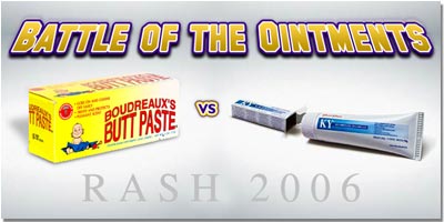 Will you take advantage of KY's dual nature? Or will you turn to Boudreaux's witch hazel? In a clash for the ages, these two cerates clash...LA vs KY...to decide who will finally be used to soothe the pulsing horrid turbid abrasion!