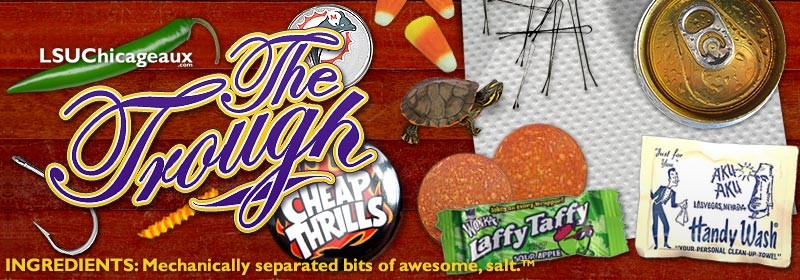 Welcome to The Trough, a place that really gets to the meat of LSU's opponents. Ok, not so much the meat, but the sinewy gristle and thick connective tissue. We then feed these funbits through a grinder to get a coarse meaty bounty, and that's what is on display here. It should be a given that while The Trough is loosely related to LSUChicageaux.com, it's more like a Baton Rouge uncle than a Tuscaloosa cousin. In other words, what's in The Trough is obviously not endorsed by any official LSU entity. They've got better sense than that.