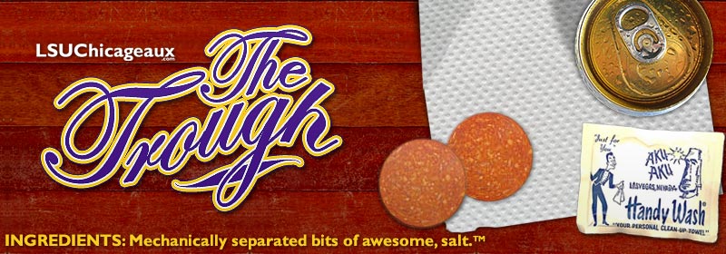 Welcome to The Trough, a place that really gets to the meat of LSU's opponents. Ok, not so much the meat, but the sinewy gristle and thick connective tissue. We then feed these funbits through a grinder to get a coarse meaty bounty, and that's what is on display here. It should be a given that while The Trough is loosely related to LSUChicageaux.com, it's more like a Baton Rouge uncle than a Tuscaloosa cousin. In other words, what's in The Trough is obviously not endorsed by any official LSU entity. They've got better sense than that.
