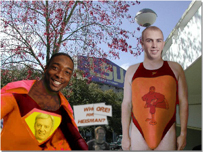 Virginia Tech QB Sean Glennon and RB Branden Ore get a few pictures in front of the Stadium before meeting their fate within. Ore's "WHO FOR HEISMAN? ORE." campaign is off to a great start!.