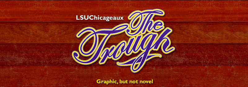 Welcome to The Trough, a place that really gets to the meat of LSU's opponents. Ok, not so much the meat, but the sinewy gristle and thick connective tissue. We then feed these funbits through a grinder to get a coarse meaty bounty, and that's what is on display here. It should be a given that while The Trough is loosely related to LSUChicageaux.com, it's more like a Baton Rouge uncle than a Tuscaloosa cousin. In other words, what's in The Trough is obviously not endorsed by any official LSU entity. They've got better sense than that.
